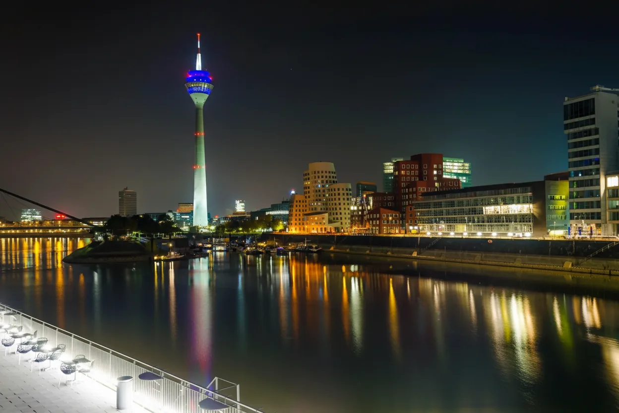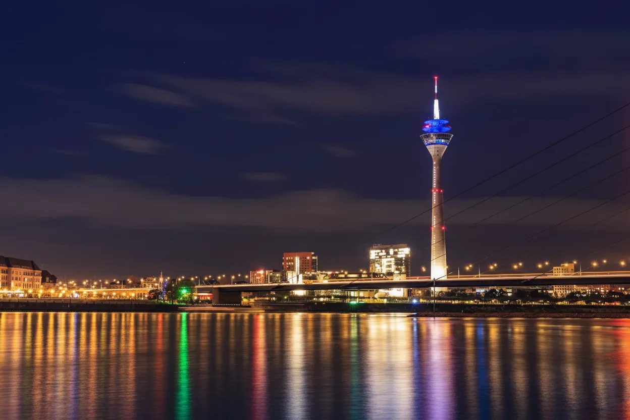 The Rhine Tower, known as Rheinturm, is Düsseldorf’s tallest landmark and offers panoramic views of the city, the Rhine River, and surrounding regions. With an observation deck and a revolving restaurant, it is one of the most popular attractions for first-time visitors.
