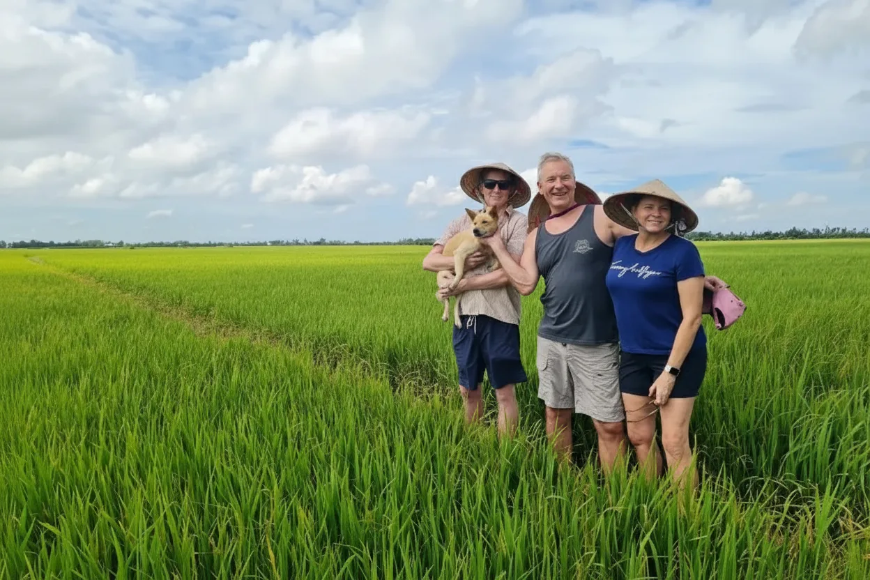 Rice fields stretch across large areas of the Mekong Delta, forming the heart of Vietnam’s agricultural landscape. These wide green fields change color with the seasons and offer peaceful countryside views that reflect rural life, traditional farming methods, and the natural rhythm of the region.