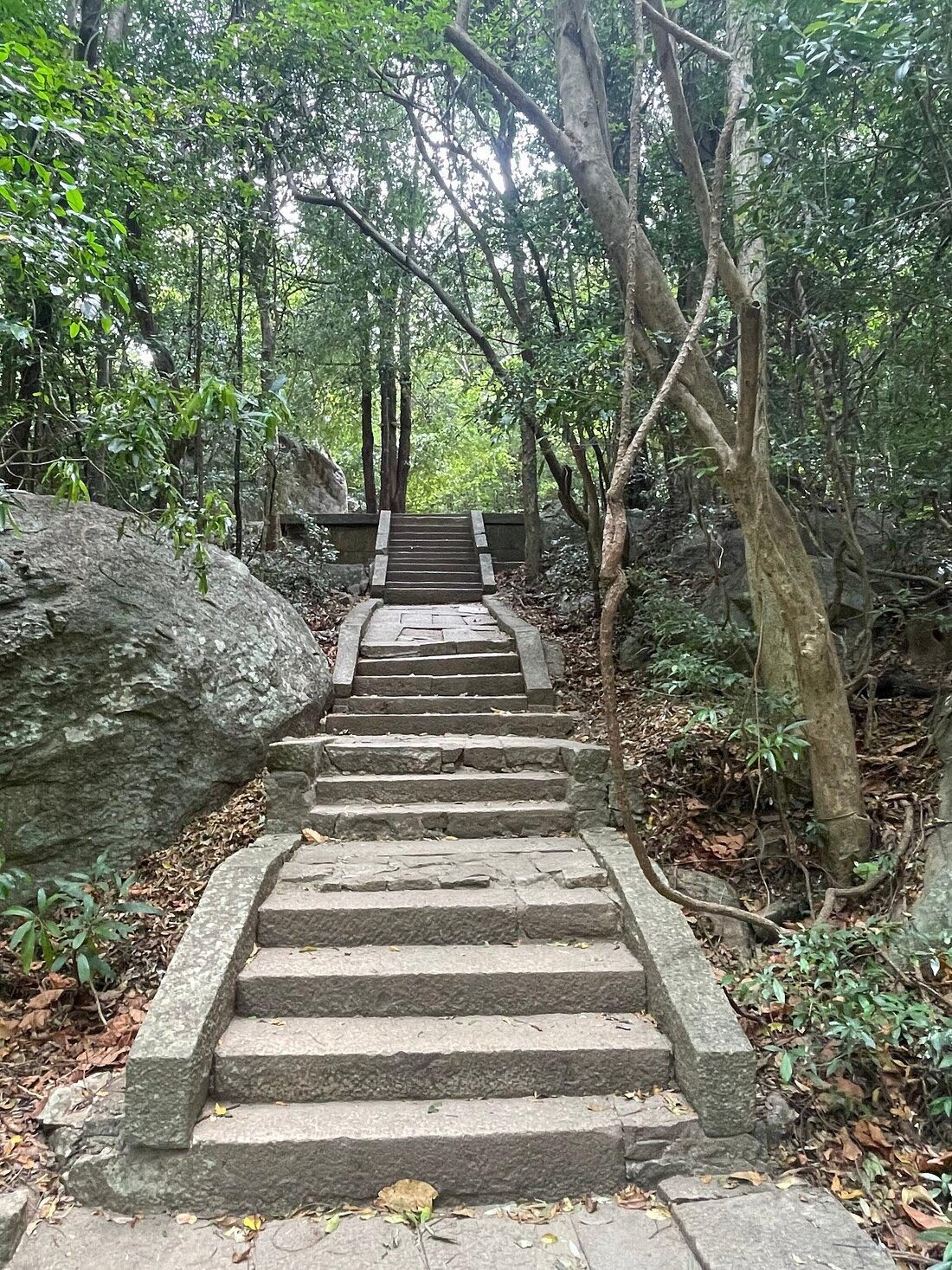 Stone pathways, meditation platforms, and bathing ponds are scattered across the mountain,