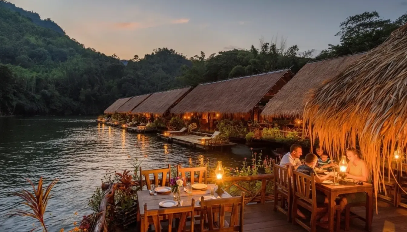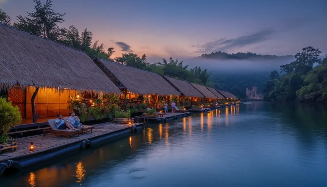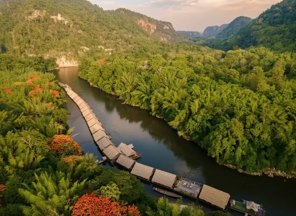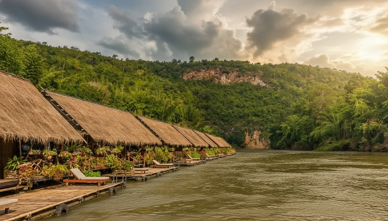 - Floating Stay 🏡 – sleep 😴 in bamboo huts 🎍 on the River Kwai 🌊✨