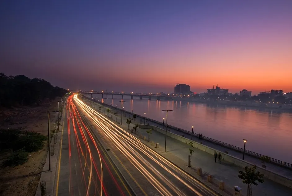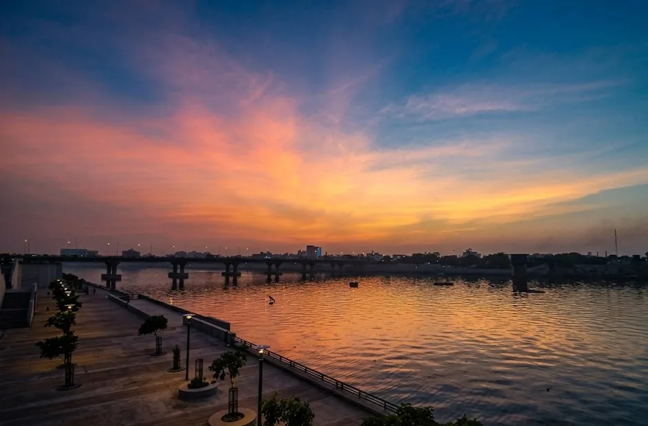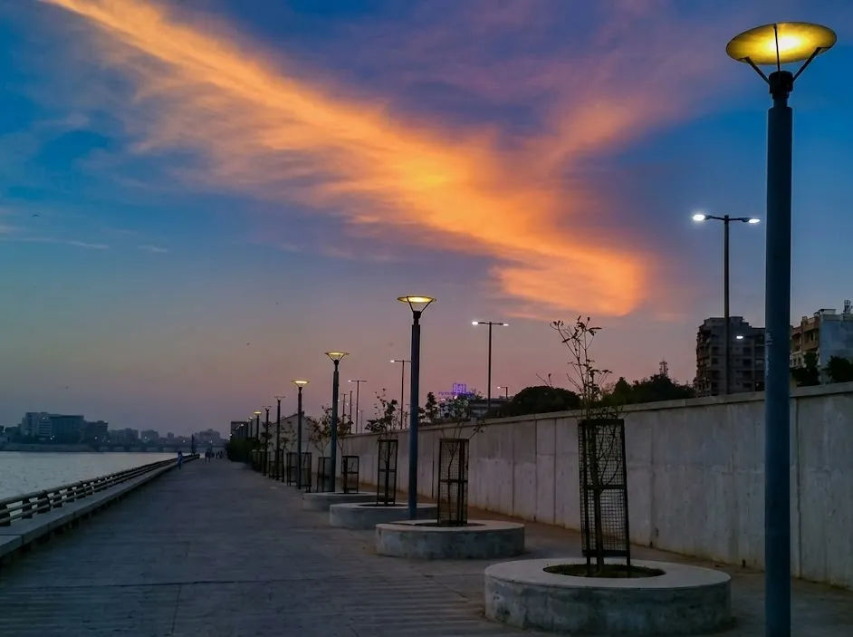 The Riverfront Promenade in Ahmedabad is a modern waterfront development