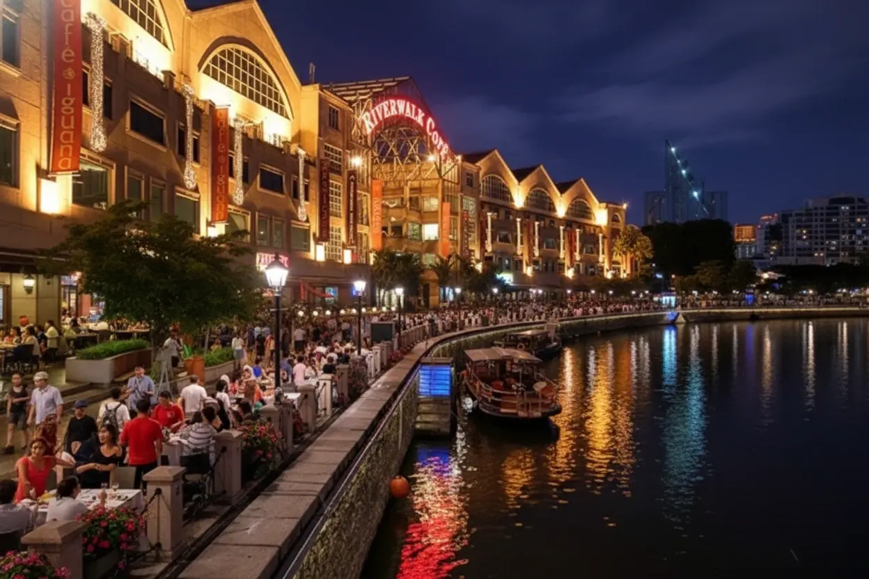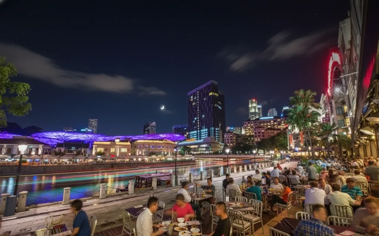 - 5:30 PM – Arrive 🧭 at Clarke Quay 🍸 and explore Riverside Point shops 🛍️🛒💨
