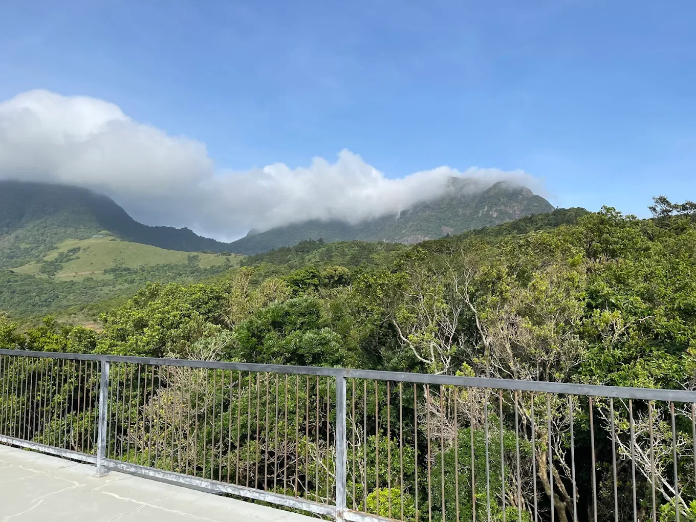Early morning or late afternoon when visibility is clear, and the mist floats over the valleys.
