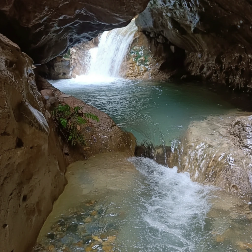 - 🕳️ Walk through the natural river cave 🌊 and explore its depths 🔦
