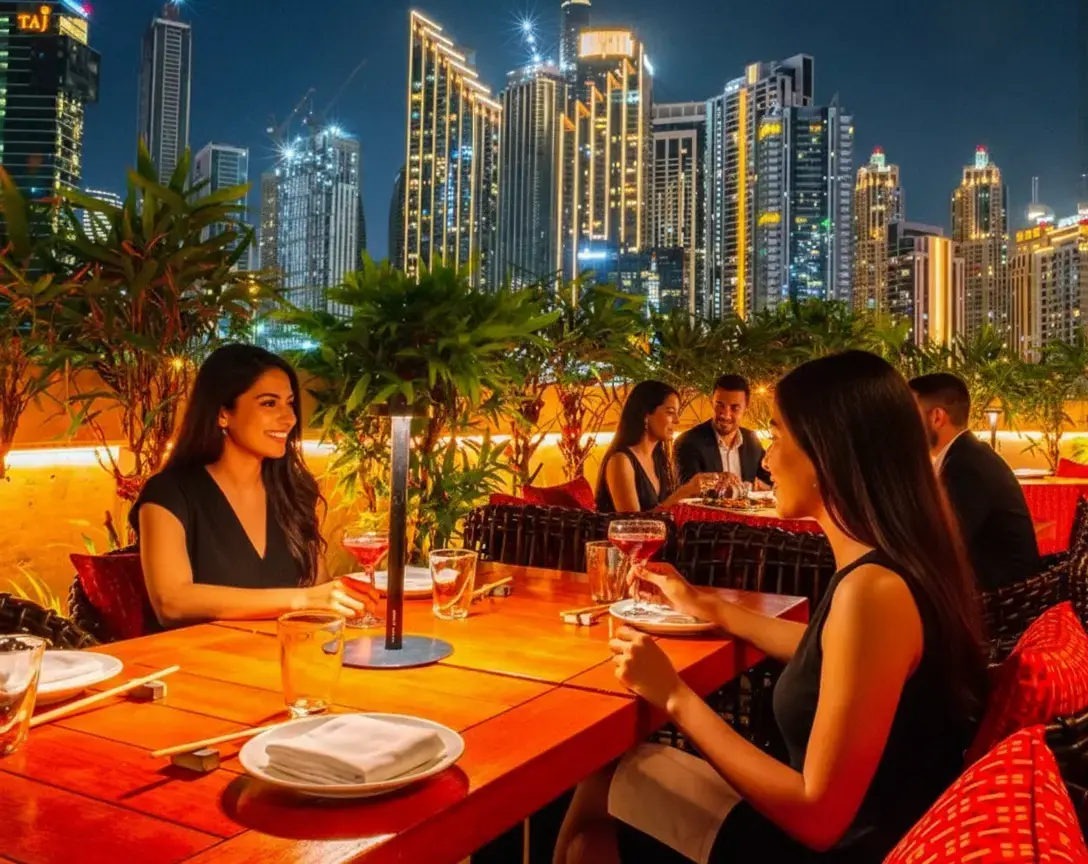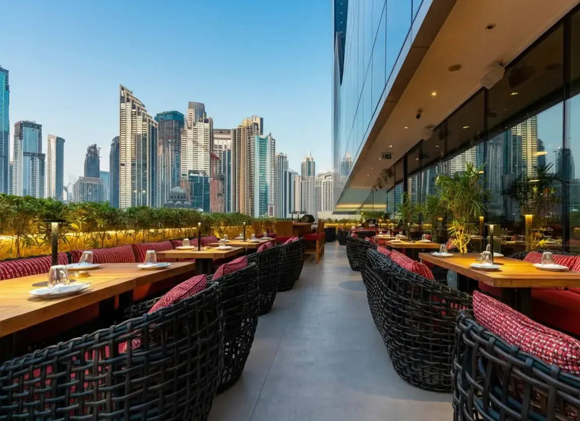 • Atmosphere 🥂🏙️: Enjoy a stylish ambiance with views of the Dubai skyline ✨🤩