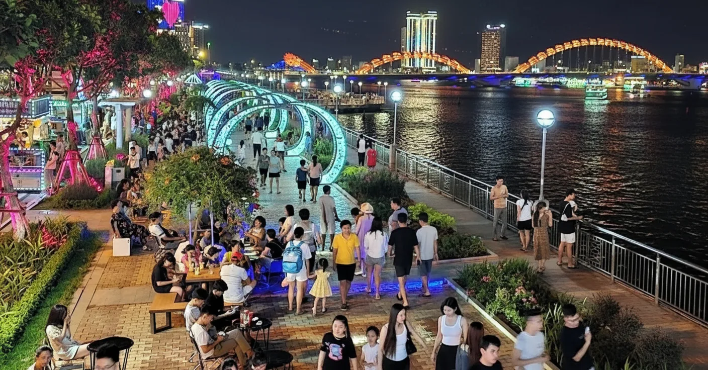 • 🕖 7:30 PM – Walk towards Dragon Bridge 🐉 to see the lights 💡