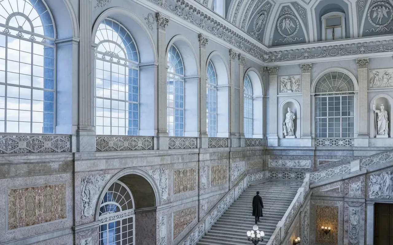 - Grand Staircase 🏰 marvel at the sweeping marble staircase ✨ designed by Gaetano Genovese 🏛️👀