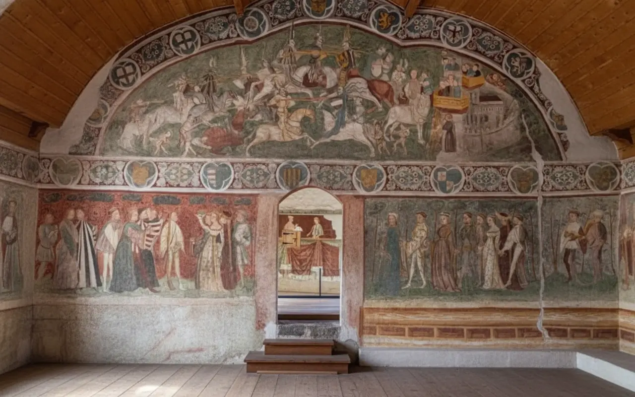 • Admire the castle’s famous medieval frescoes 🎨 – some of the best preserved ✨ in Europe 👑🖼️