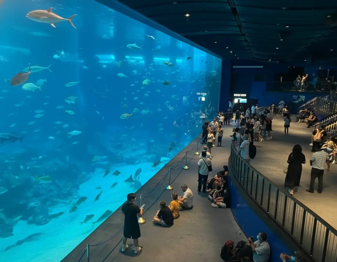 - 9:00 AM – Enter 🚪 the aquarium 🐠 and start with Ocean Dome 🌐👀💨