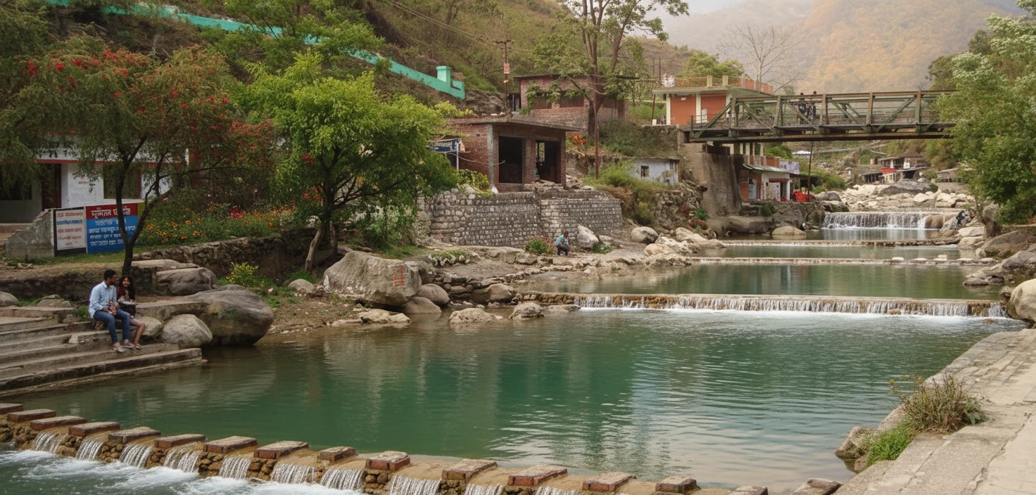 near Dehradun known for its sulphur-rich water and seasonal waterfalls. The