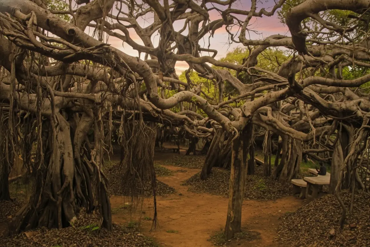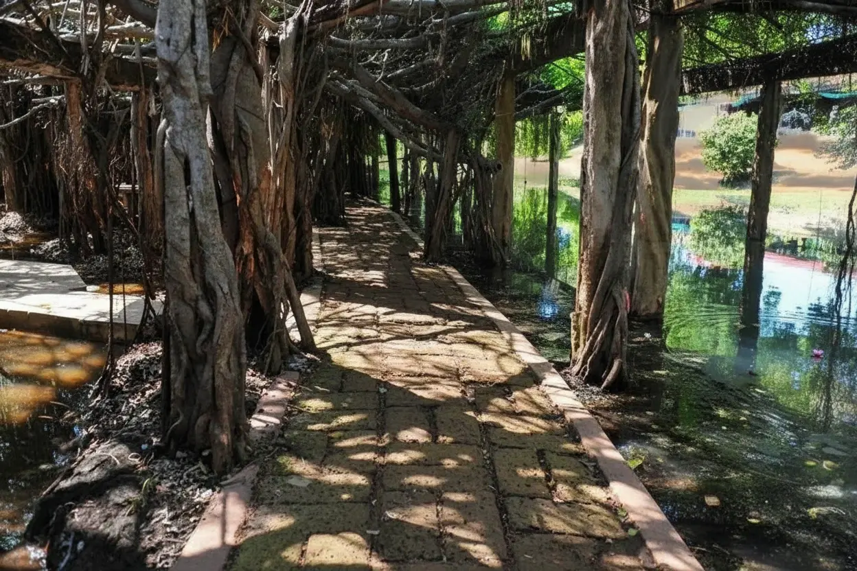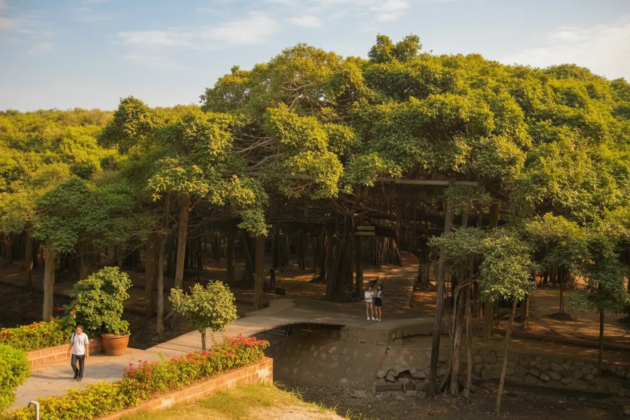 - 8:00 AM – Arrive 🧭 and explore the banyan grove 🌳🌿💨