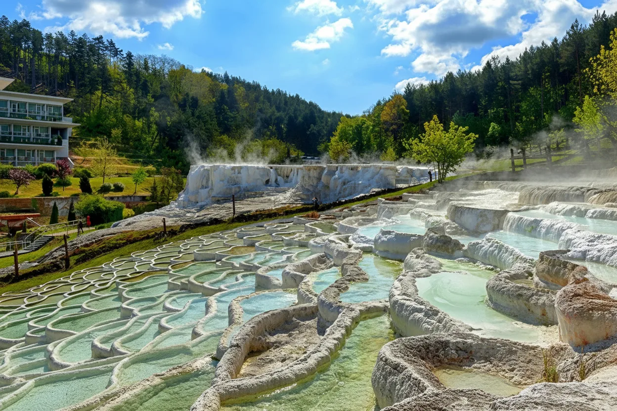 Salt Hill Viewpoints around Egerszalók provide elevated positions to view the famous white limestone salt formations and the surrounding countryside. These viewpoints offer a clear perspective of the unique geological landscape shaped by mineral-rich thermal water. From these viewing points, travelers can enjoy wide rural panoramas, peaceful surroundings, and excellent opportunities for landscape photography. They are ideal stops when exploring the salt hill area on foot.