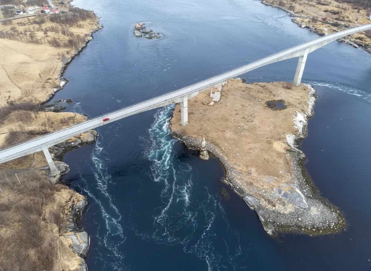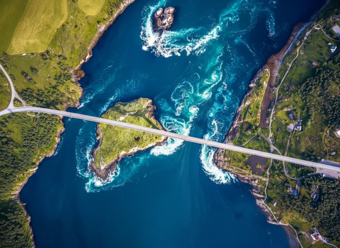 • 🌉 Watch the powerful tidal currents from the high Saltstraumen Bridge 🌊 to see the whirlpools forming. 🌀