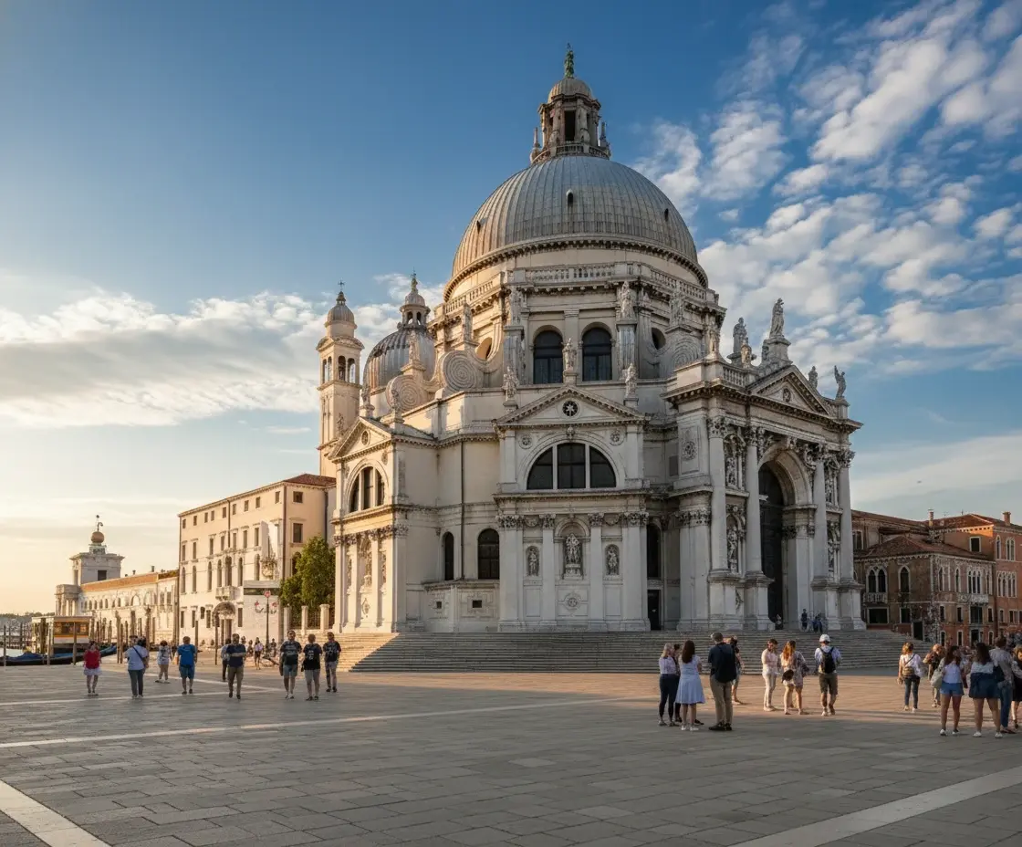 • 10:00 AM – Arrive 🧭 at Basilica di Santa Maria della Salute ⛪ and explore the interior 🙏✨💨