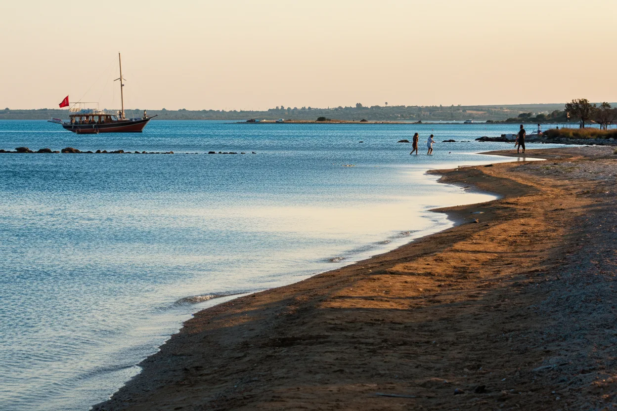 Saplı Ada is a small island connected to the mainland by a natural sand and stone land bridge, especially visible during low tide. The shallow waters around the island allow visitors to walk across the sea, making it a unique and enjoyable experience. This spot is popular for relaxed swimming, short walks, and enjoying calm coastal scenery