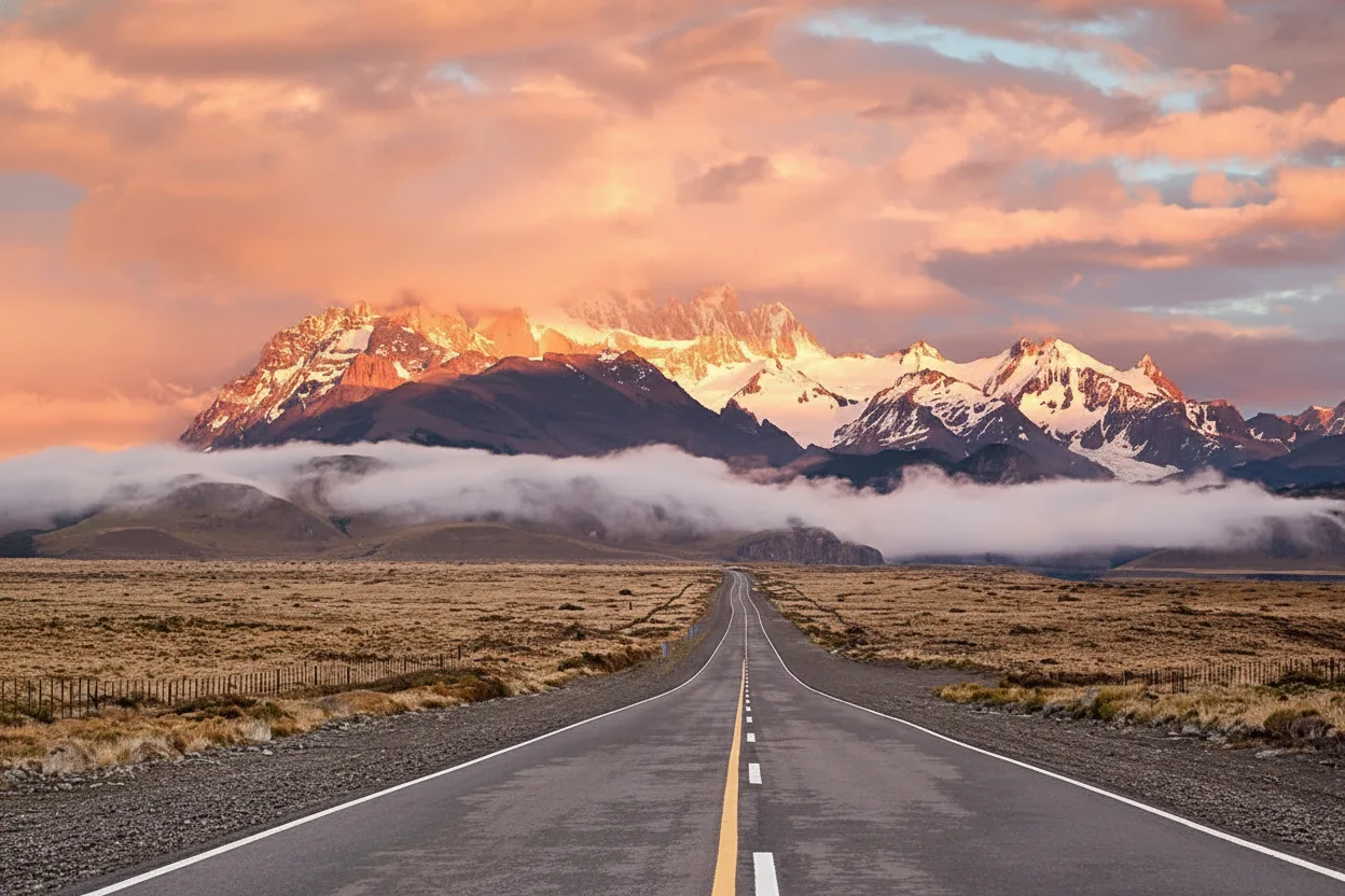 road trip experiences in Argentine Patagonia. Open highways, vast steppe