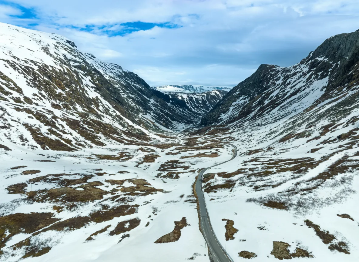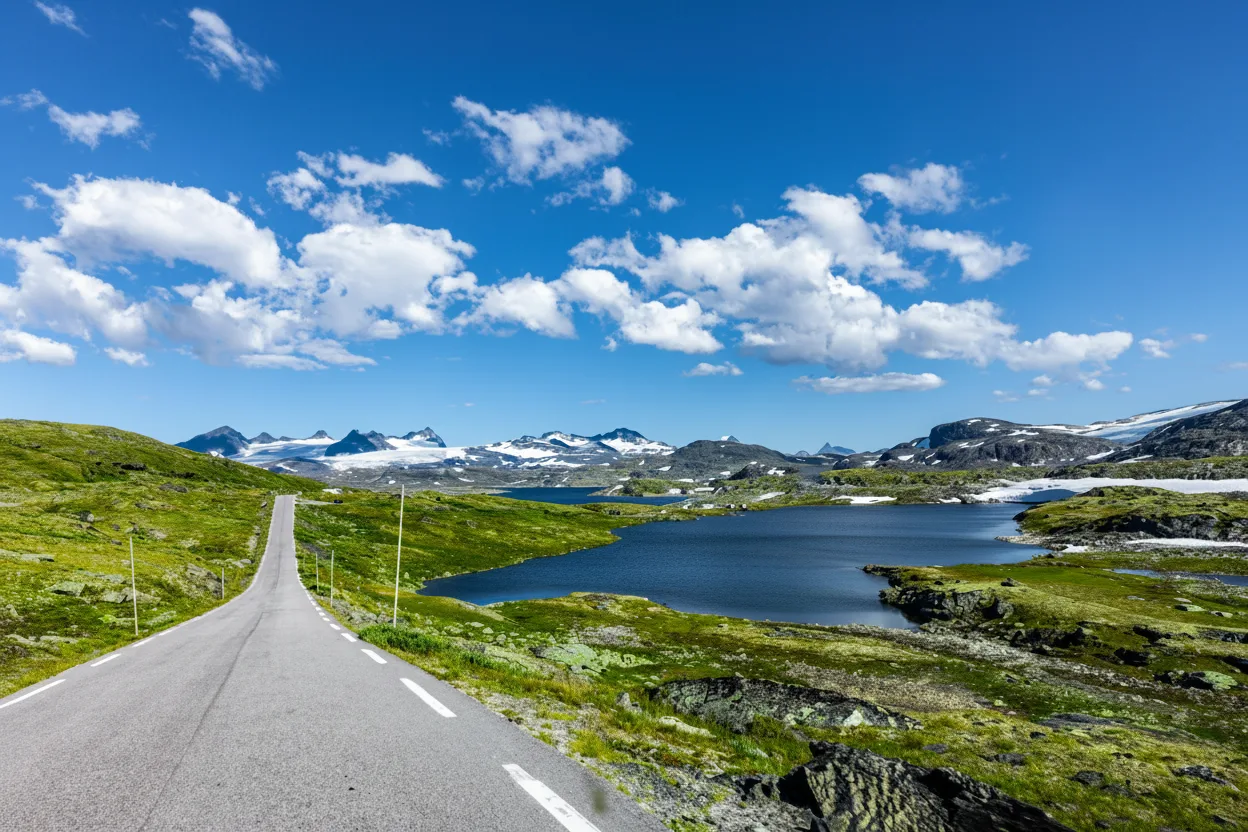 Scenic mountain roads in and around Jotunheimen National Park offer some of Norway’s most beautiful driving experiences. These roads pass through high mountain terrain, deep valleys, and open plateaus, revealing dramatic alpine landscapes along the way. Driving these routes allows travelers to experience the vastness of the mountains without long hikes. Frequent viewpoints and quiet rest areas make these roads ideal for slow travel, photography, and enjoying the changing mountain scenery.