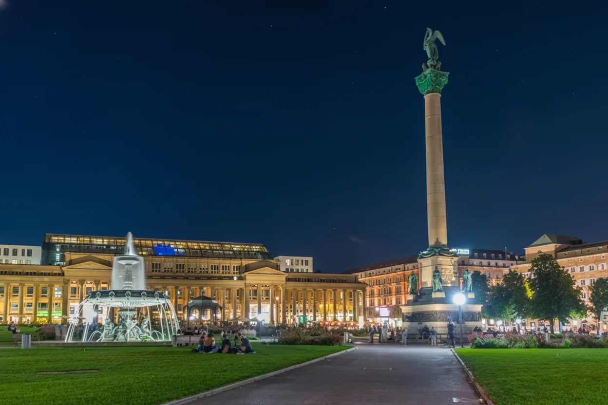 Schlossplatz is the central square of Stuttgart and one of the city’s most important public spaces. Surrounded by historic buildings, green lawns, and fountains, it is a popular meeting point for locals and visitors alike. The square connects major cultural landmarks and offers a relaxed atmosphere for walking, people-watching, and enjoying the city center.
