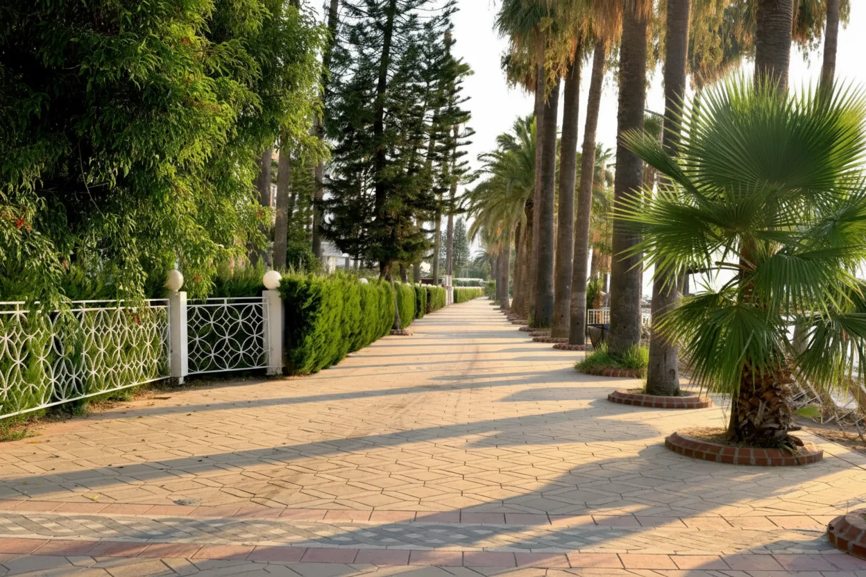 coastline. Lined with palm trees, cafés, and small beaches, the promenade offers a relaxed