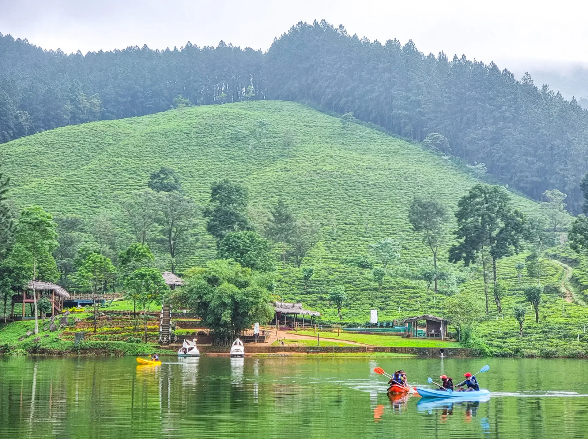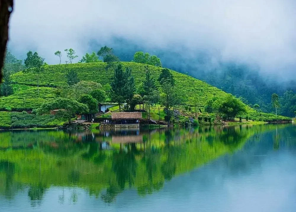 Morning to early afternoon, when the mist lifts and the sunlight reflects off the lake.
