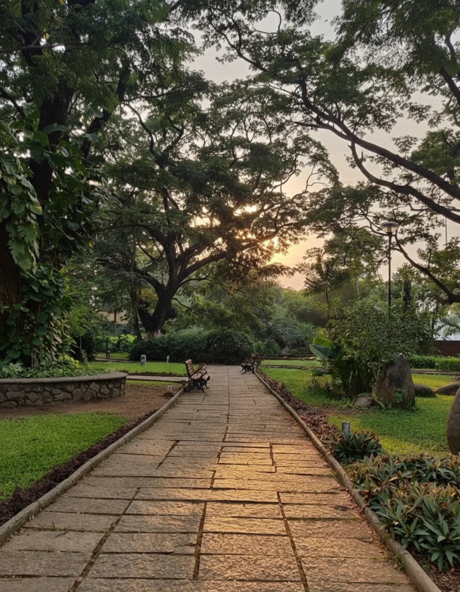 decorative garden layouts. It is an ideal spot for morning or evening walks,