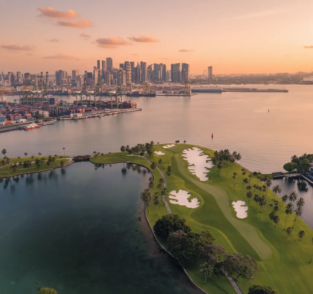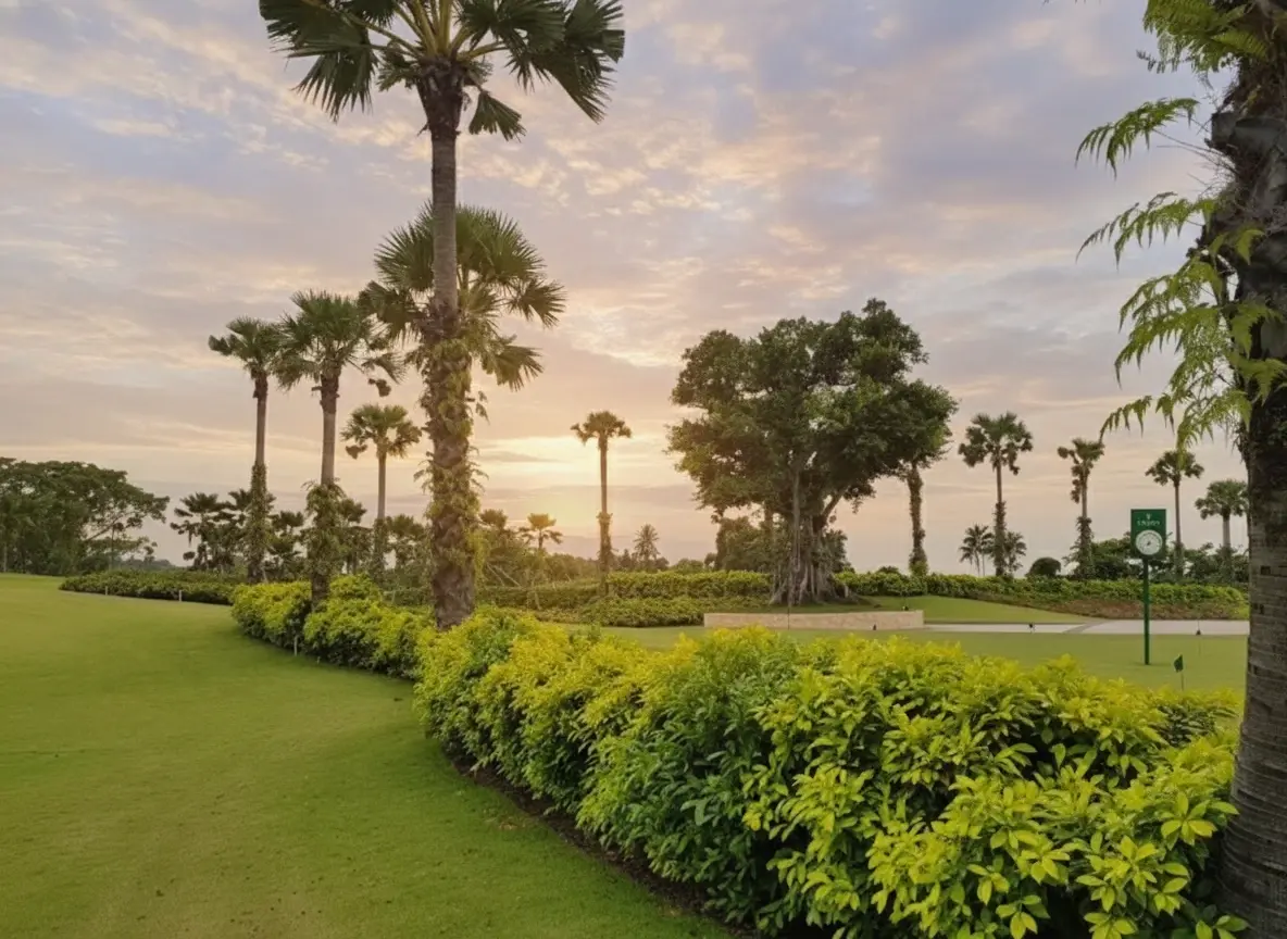 Early morning for cooler weather and less crowded greens.