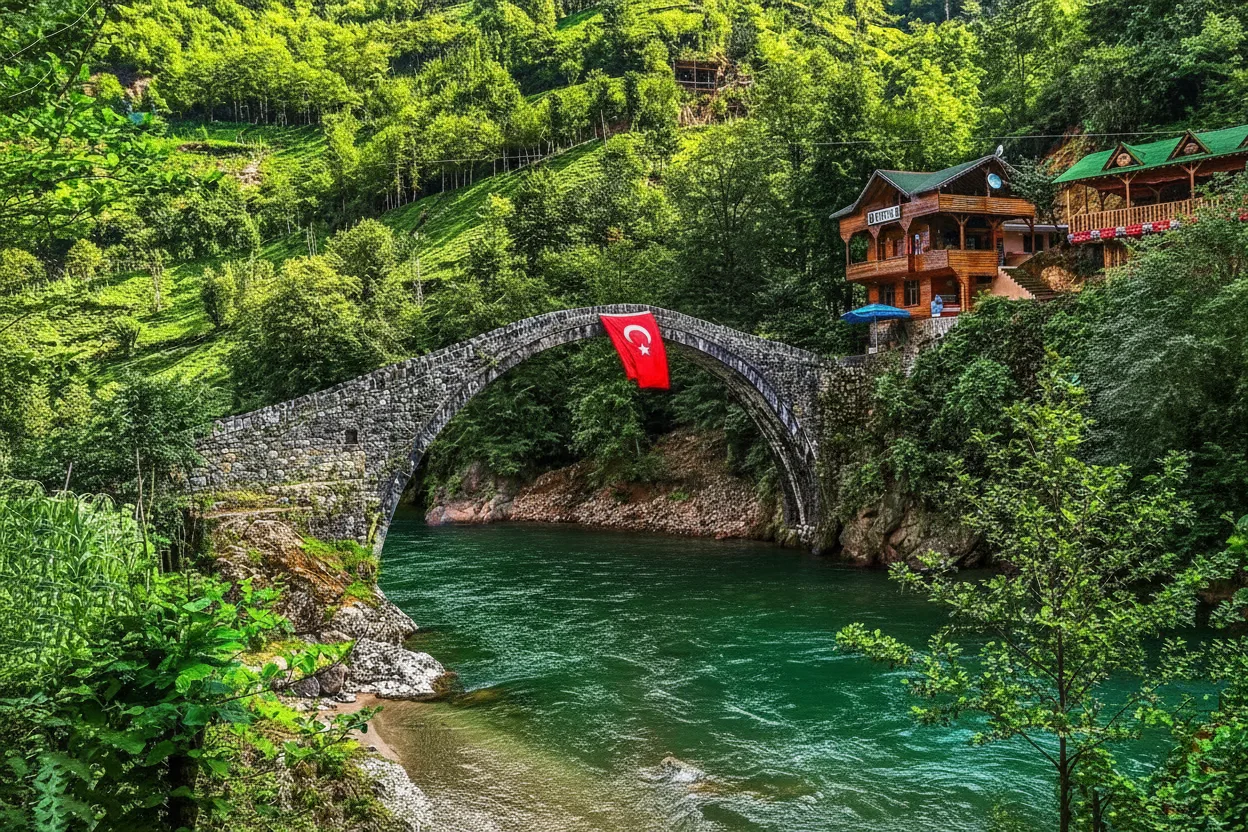 Sevdaluk Bridge is one of the most photographed stone bridges in Turkey’s Black Sea region. Located over the Fırtına River, the bridge reflects traditional Ottoman-era architecture and offers beautiful views of the surrounding valley and flowing river.