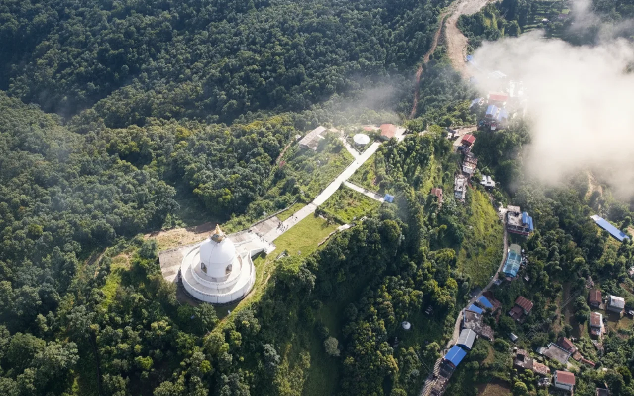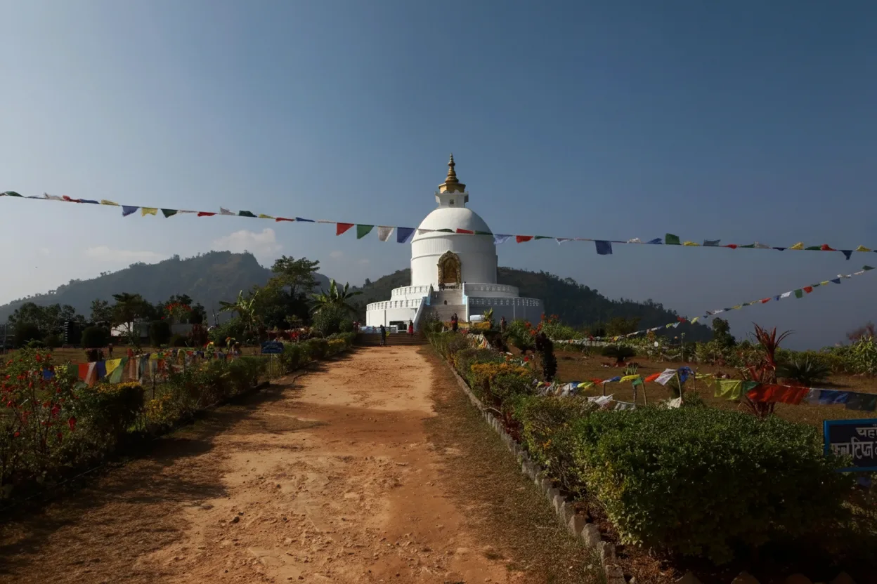 • 🕕 06:00 AM – Sunrise at Shanti 🏛️ Stupa 🌅