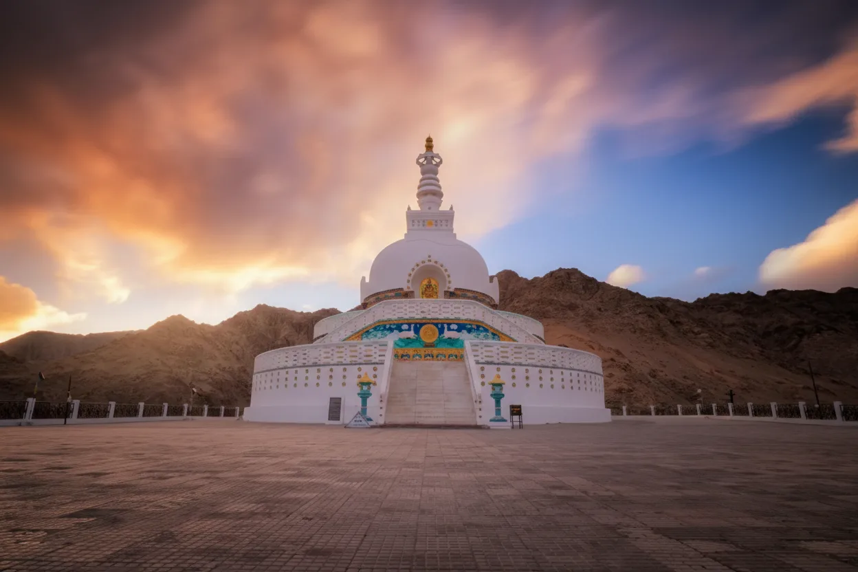 Shanti Stupa is a white-domed Buddhist monument located on a hilltop overlooking Leh town in Ladakh. It was built to promote peace and harmony and is associated with Japanese Buddhist traditions. The stupa offers wide views of Leh town, surrounding mountains, and the Indus Valley. Its calm setting and clean design make it a popular place for sunrise and sunset visits. For travelers, Shanti Stupa provides a peaceful space for reflection along with some of the best viewpoints in Leh.