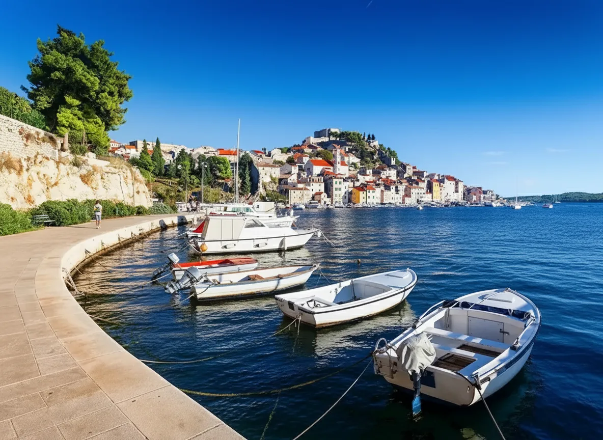 The Šibenik waterfront is a lively coastal promenade that stretches along the edge of the historic old town. It offers open views of the Adriatic Sea, passing boats, and the city’s stone architecture rising behind the harbor. Walking along the waterfront allows travelers to enjoy fresh sea air, relaxed strolls, and easy access to cafés and restaurants. The promenade is a popular gathering place for both locals and visitors throughout the day