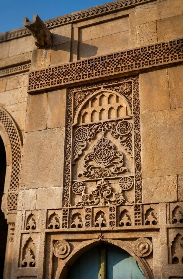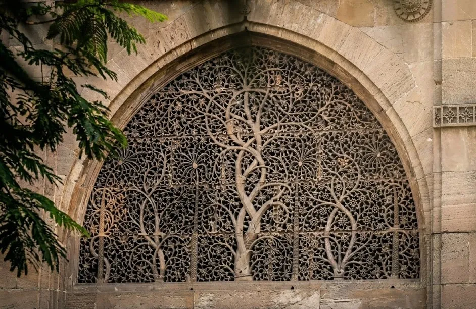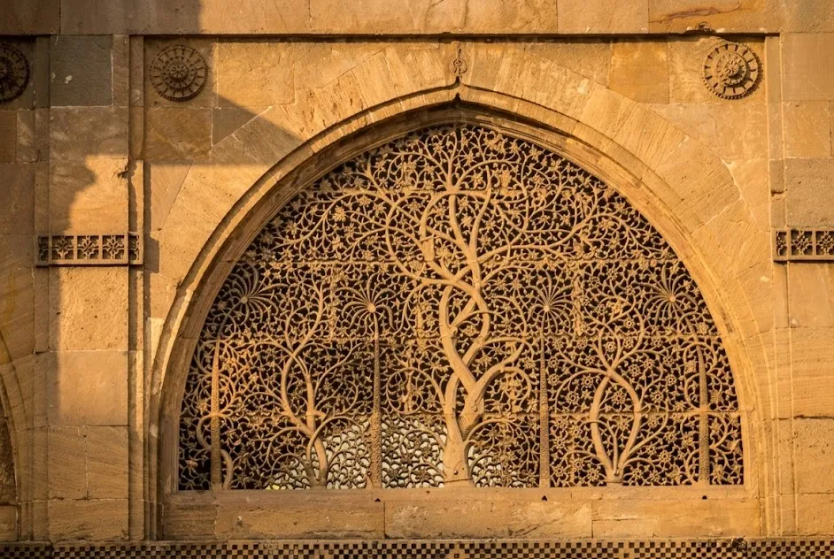 The Sidi Saiyyed Mosque, located in the old city area of Ahmedabad, is