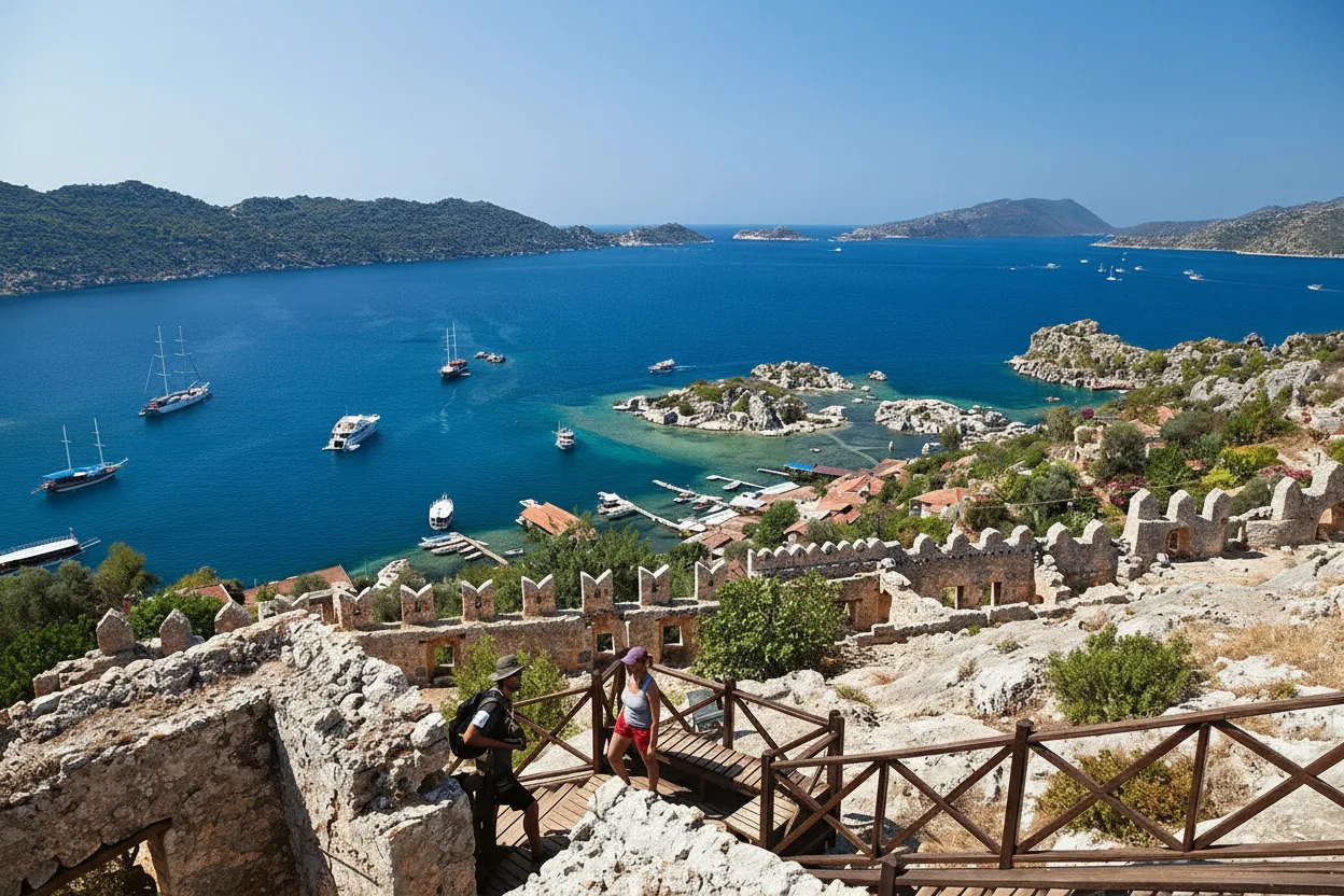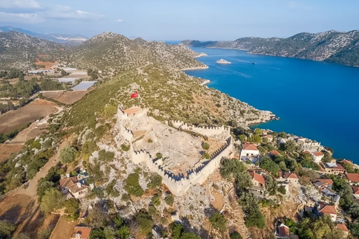 • 🏰 Visit the historic Simena Castle 🔭 for the best panoramic views 🏰