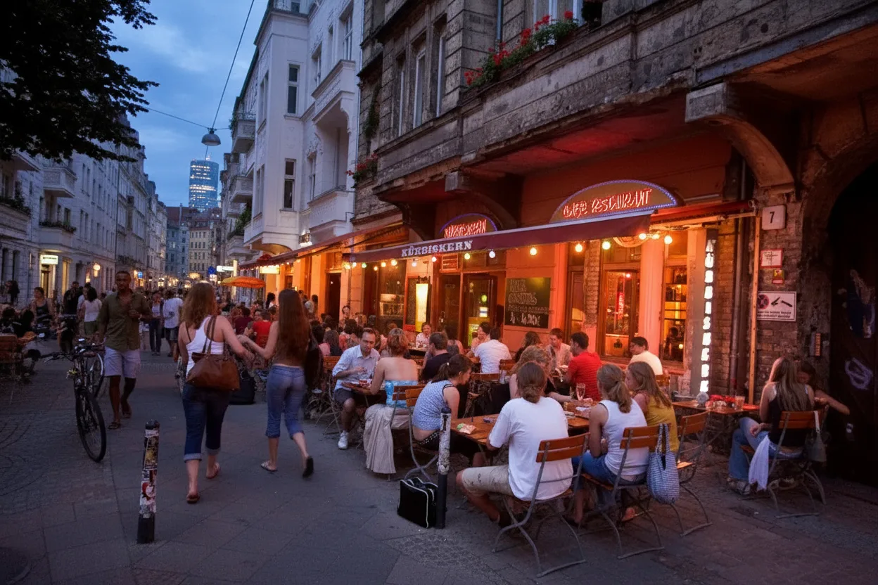 Simon-Dach-Strasse, located in Friedrichshain, is one of Berlin’s liveliest streets, filled with cafés, bars, restaurants, and vibrant nightlife spots. Known for its youthful energy, outdoor seating, and international dining options, it’s a popular destination for travelers looking to enjoy Berlin’s modern social scene.