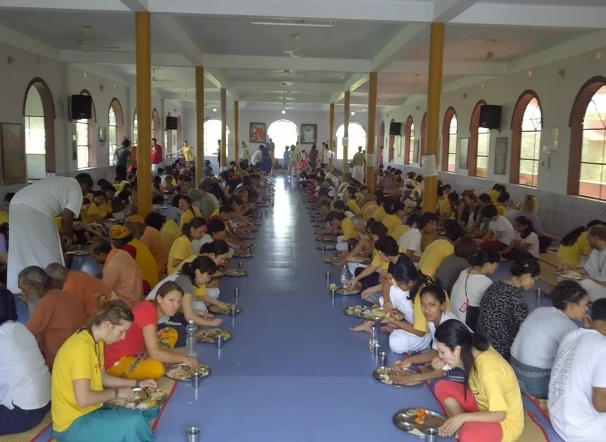 The ashram follows a structured daily routine that includes yoga practice, meditation sessions,