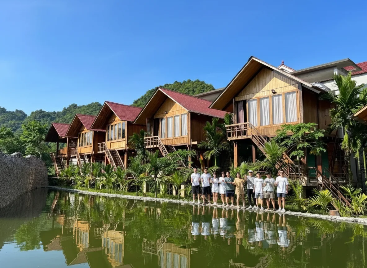 • 🕗 08:00 – Start cycling from Phong Nha village 🏘️ into the green valley 🚲