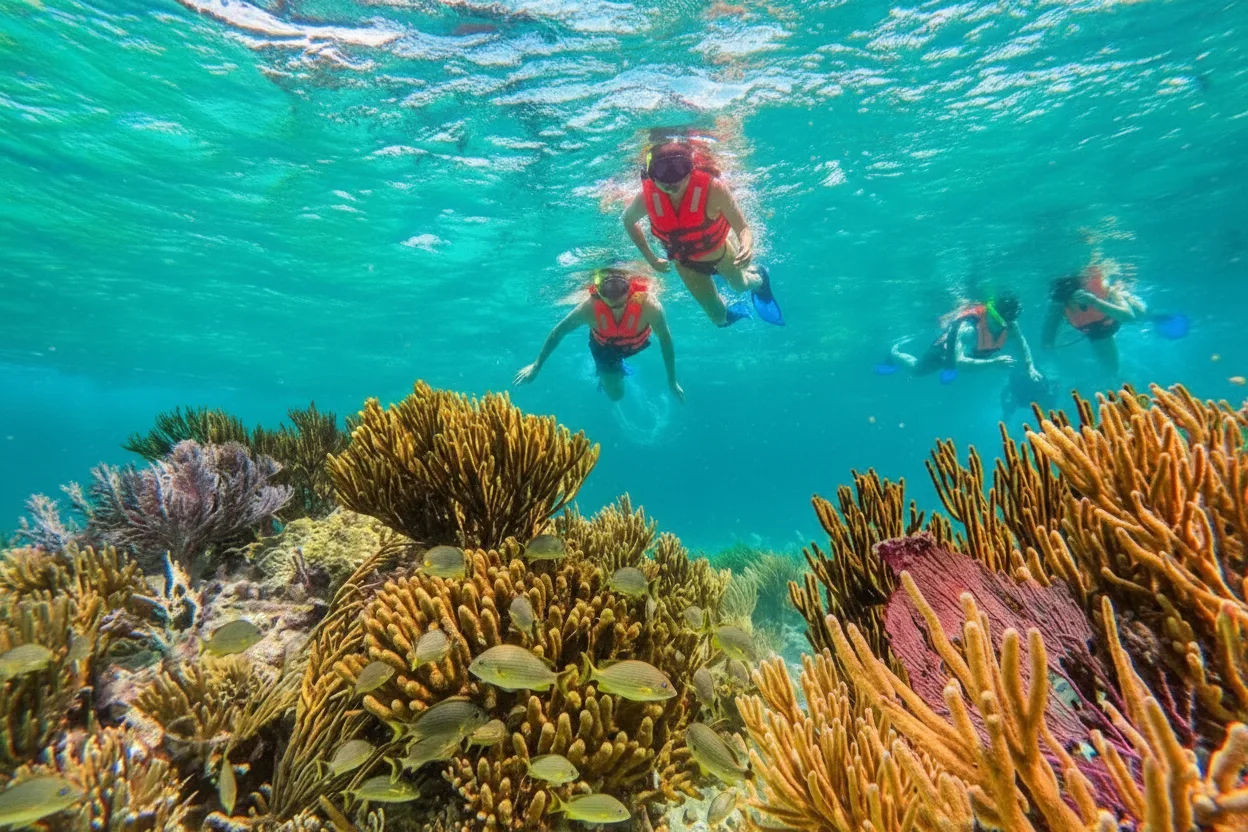 • 🤿 Snorkel above the vibrant 🪸 coral reefs in the shallow waters 🌊