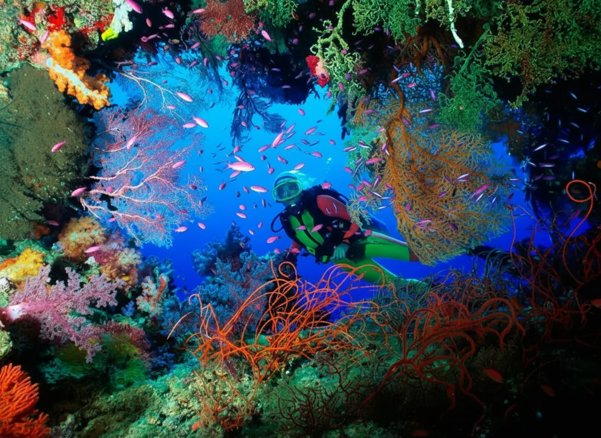 • 🚤 Join professional diving 🌊 tours to explore the deeper reef areas 🧜