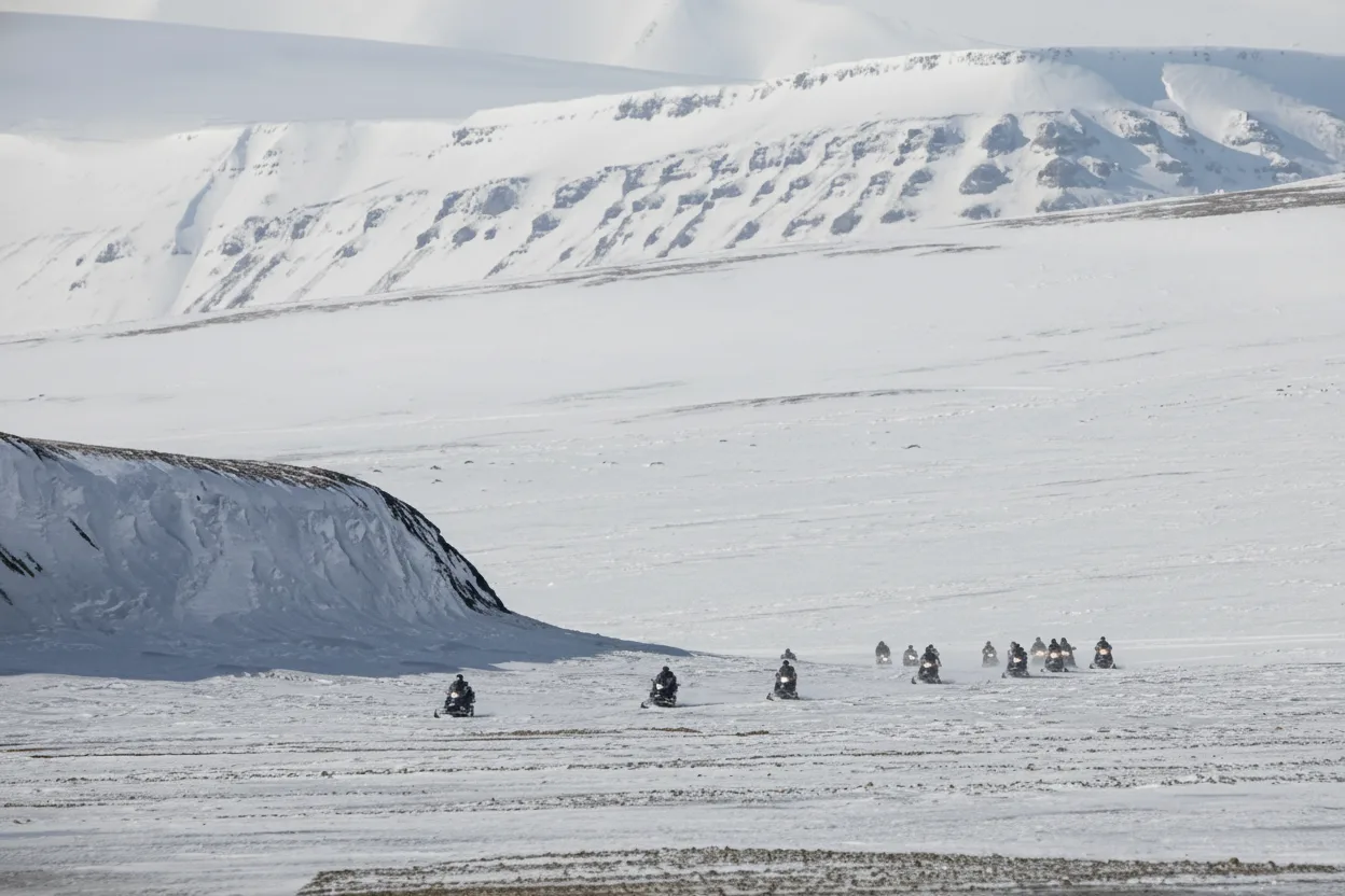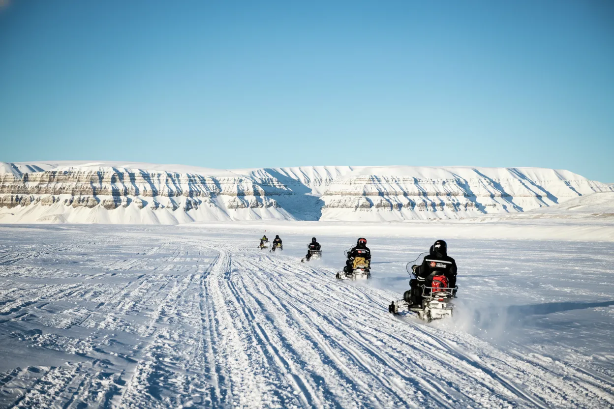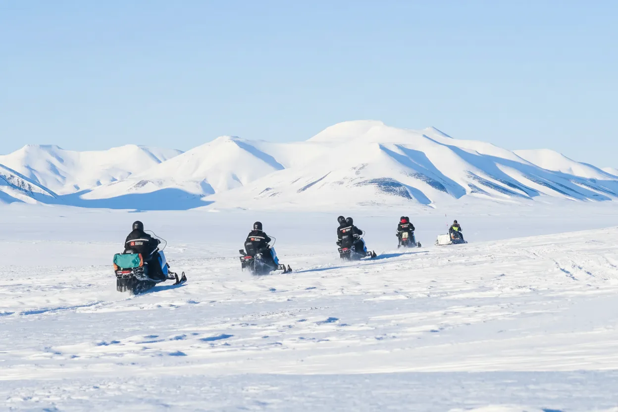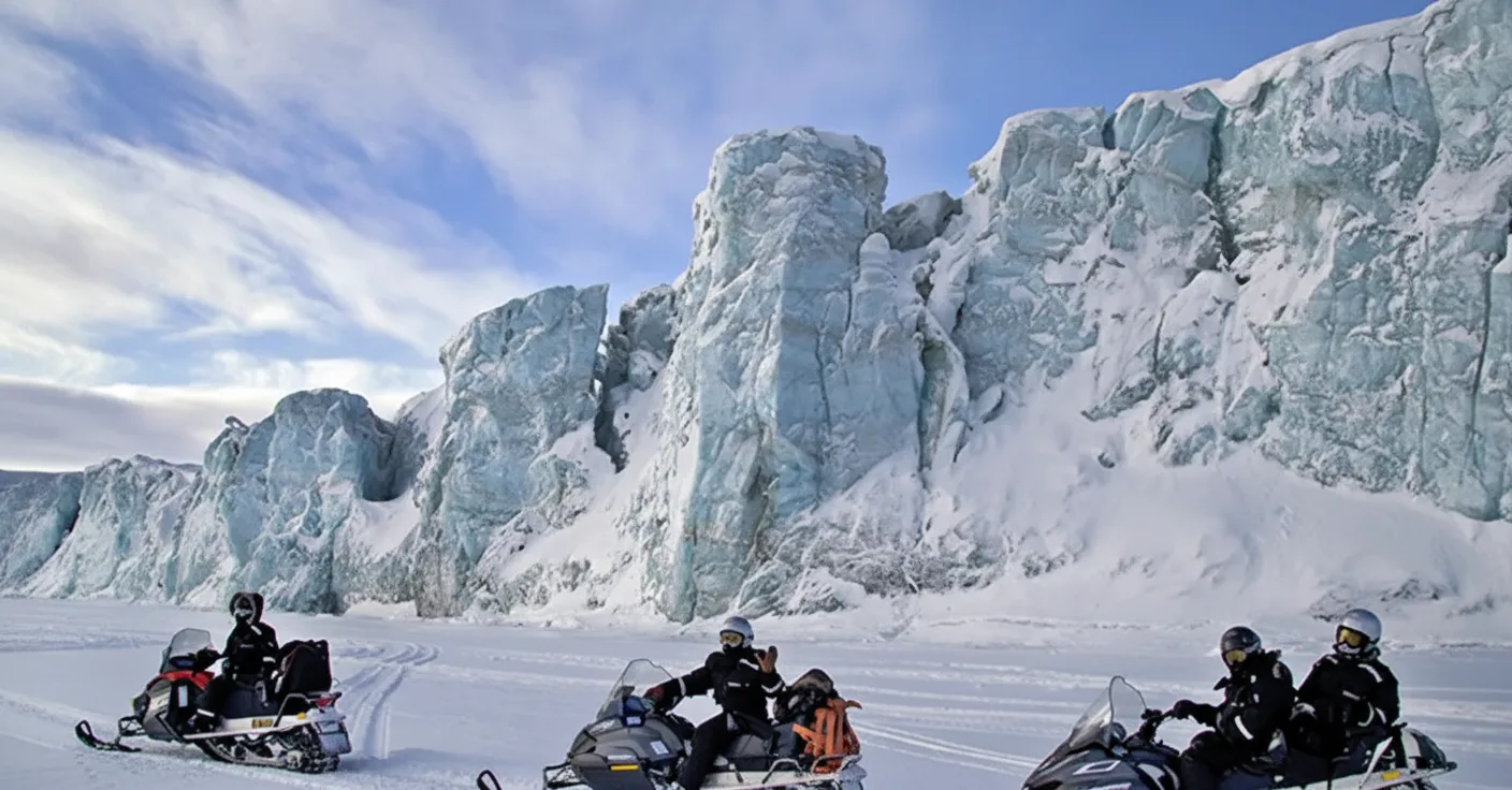 Snowmobile expedition routes are established Arctic travel paths used to cross frozen landscapes efficiently and safely. These routes connect base camps, glaciers, fjords, and remote wilderness zones. Traveling by snowmobile allows explorers to cover long distances across ice fields while experiencing the vast scale of the Arctic environment. For travelers, snowmobile routes offer a controlled and guided way to experience Arctic mobility and remote scenery.