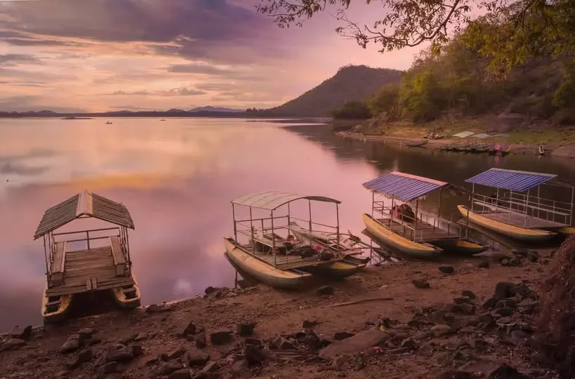 fishermen at work, walk along the dam, and enjoy golden sunsets reflecting on still waters.