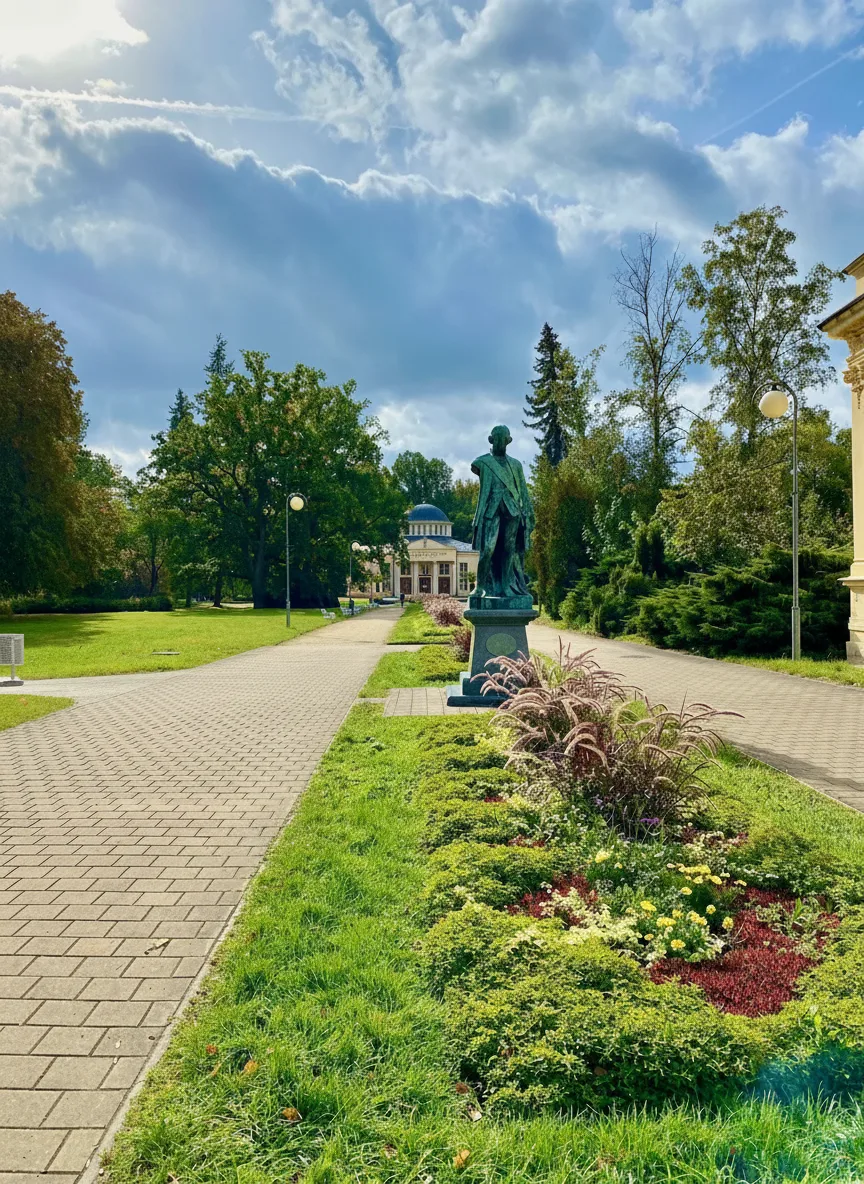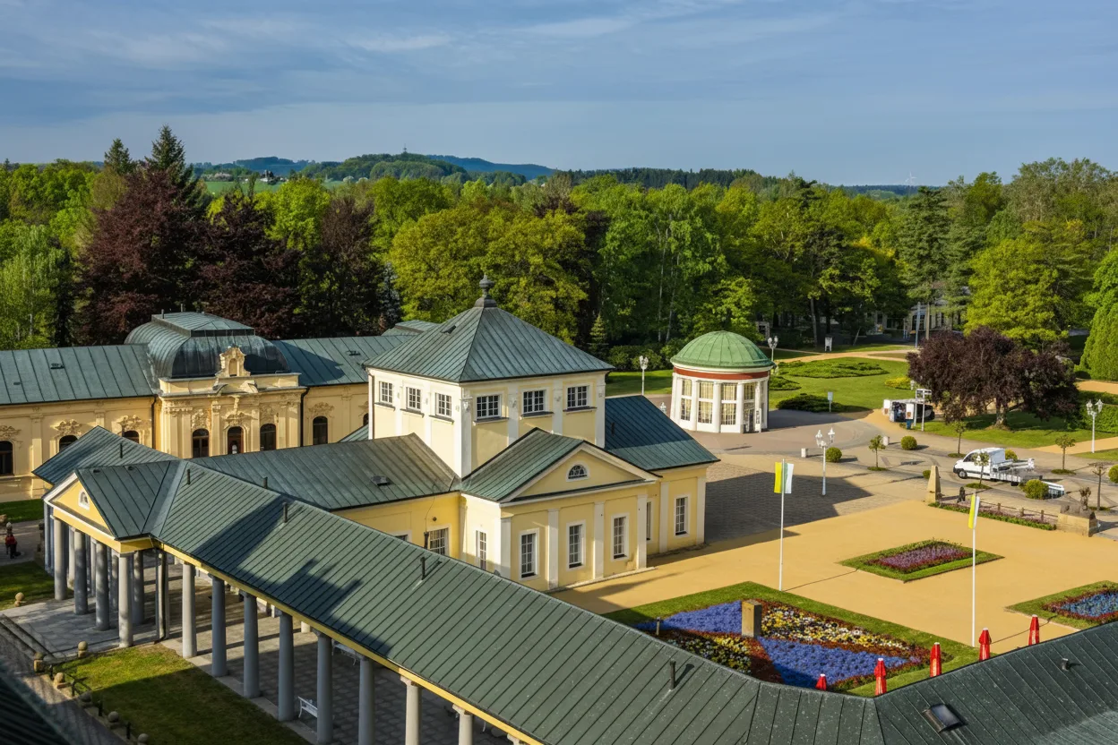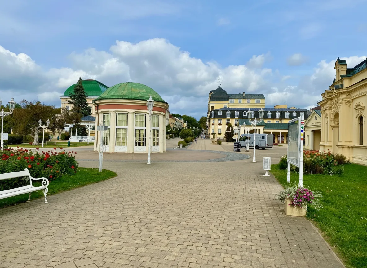 The Spa Colonnade in Františkovy Lázně is a graceful covered walkway designed for traditional spa walks. The structure reflects the refined spa culture that defines the town. Visitors use the colonnade for slow walks, relaxation, and access to nearby springs and spa buildings. Its elegant design and calm atmosphere encourage unhurried movement. For travelers, the Spa Colonnade offers a classic spa-town experience and a pleasant place to walk while enjoying historic surroundings.