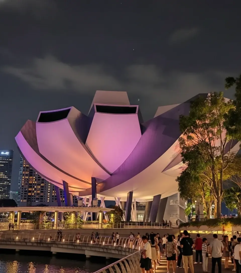• Evening Walk 🚶‍♀️ combine the show 🤝 with a stroll 👣 along the Marina Bay Waterfront Promenade 🌊🌙✅