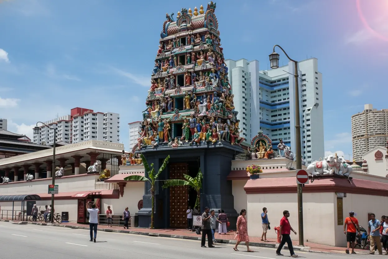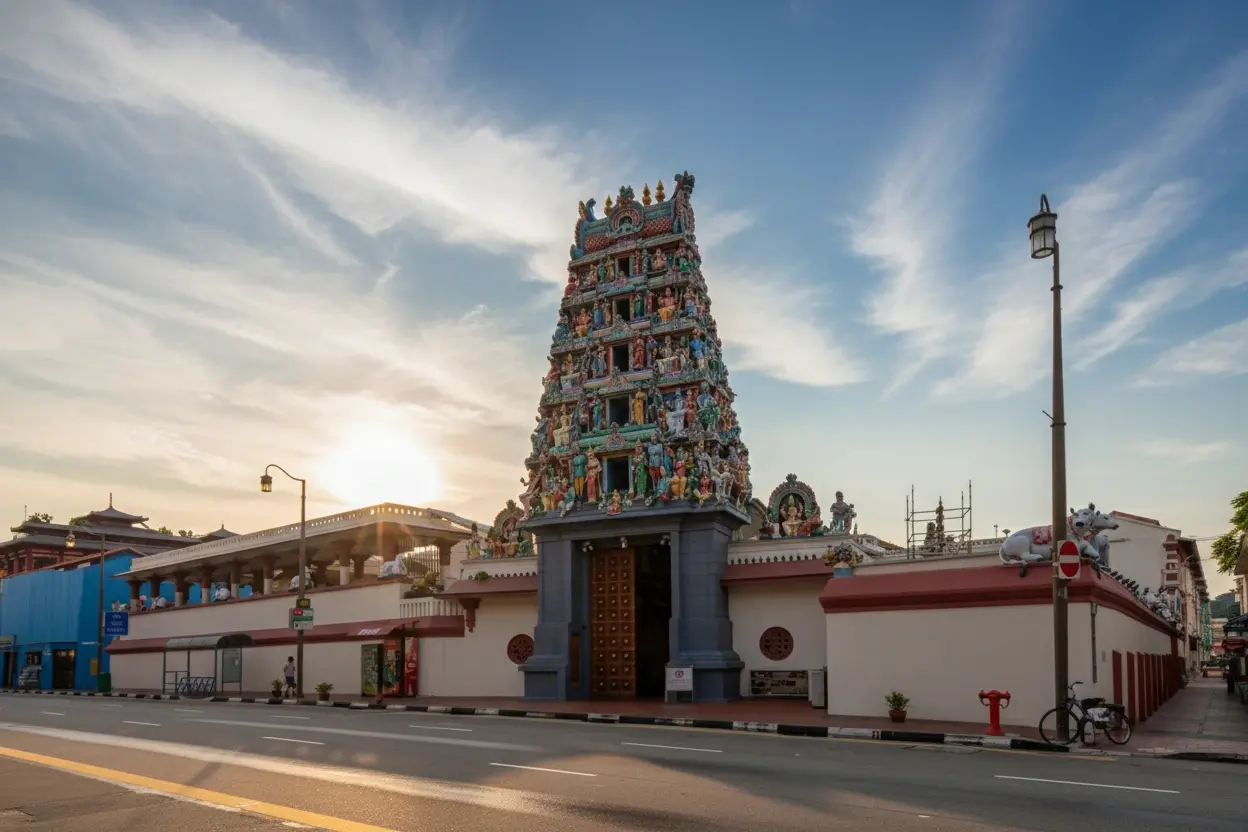 Sri Mariamman Temple, located in the heart of Chinatown, Singapore, is the oldest Hindu temple in the country. It is dedicated to the goddess Mariamman, known for her power to cure illnesses and diseases. The temple’s striking Dravidian architecture, colorful sculptures, and vibrant rituals make it one of Singapore’s most significant cultural landmarks.