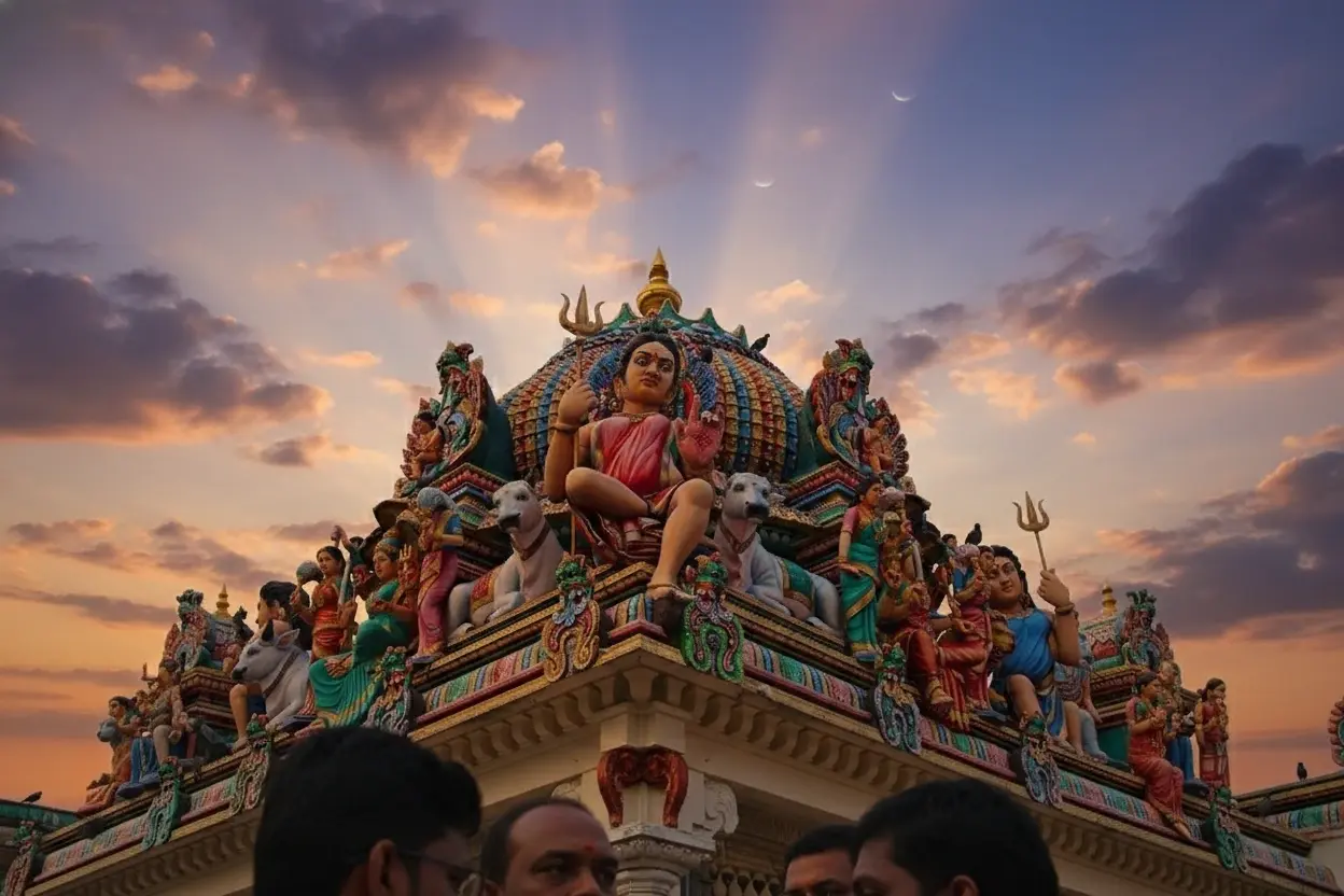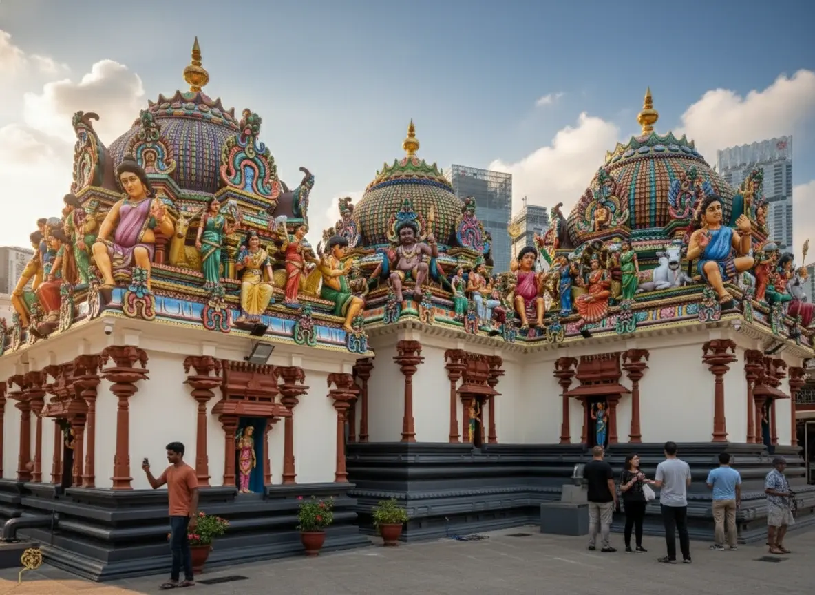 • 8:00 AM – Arrive 🧭 at Sri Mariamman Temple 🕌 and explore the main shrine 🙏💨