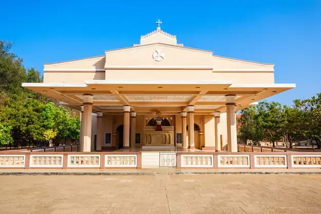 and overlooking the tranquil Indian Ocean, the church is a serene retreat that combines deep devotion,
