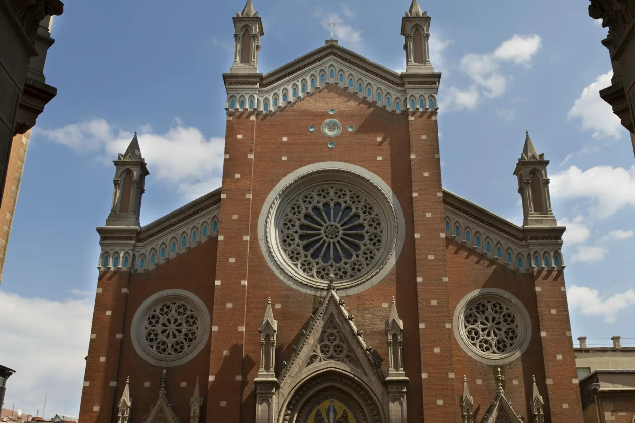 • ⛪ Marvel at the stunning Neo-Gothic architecture 🏛️ with its red brick facade and soaring arches. 🧱