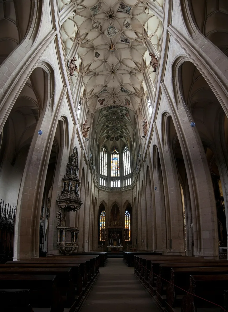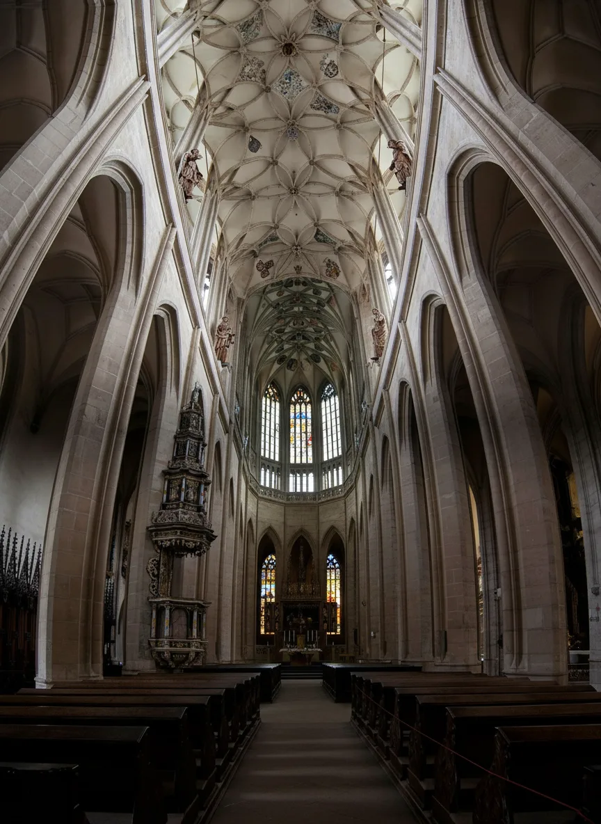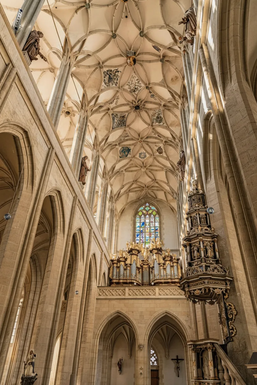 • ⛪ Explore Gothic architectural details like the soaring ribbed vaults and unique tent-like roof peaks 🏗️ 🏰