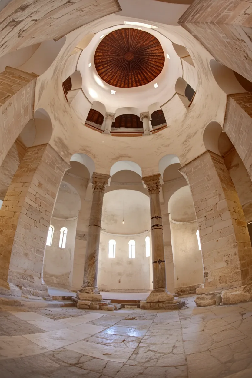 • 🌀 Observe the circular architectural design: Marvel at the rare “rotunda” shape, standing 27 meters high and 22 meters wide 🏛️