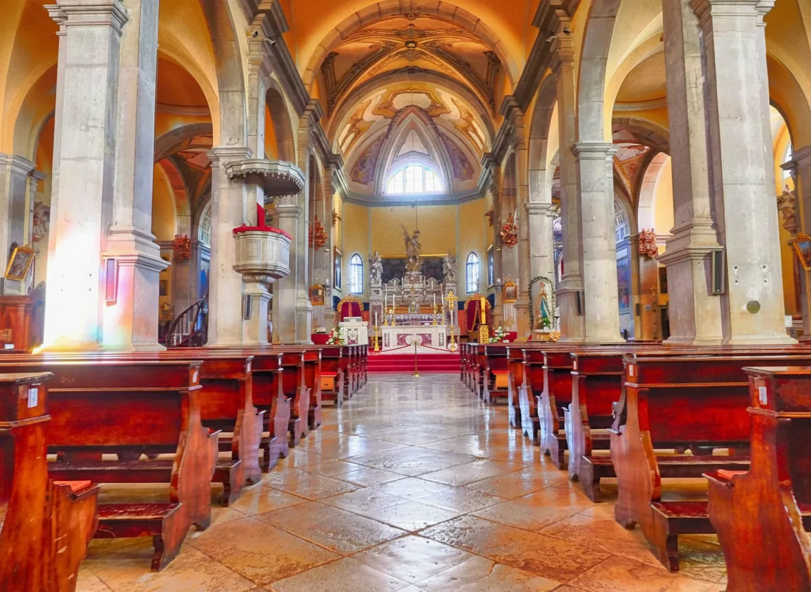 • ⛪ Visit the historic church 🏛️ interior 🕯️