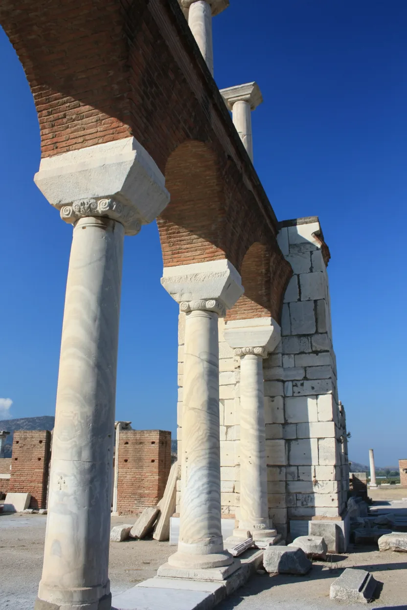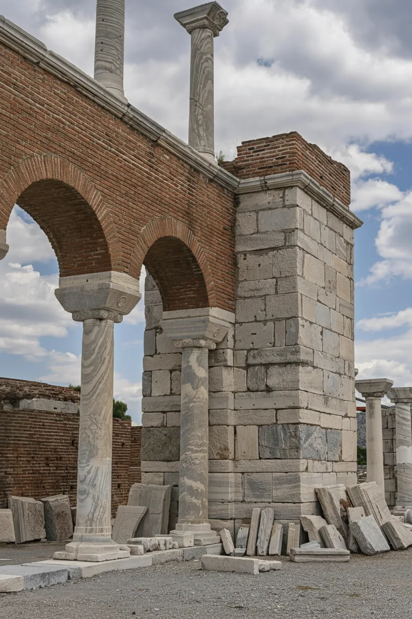 • 🏛️ Explore basilica ruins and columns 🏗️ standing against the sky 🏛️