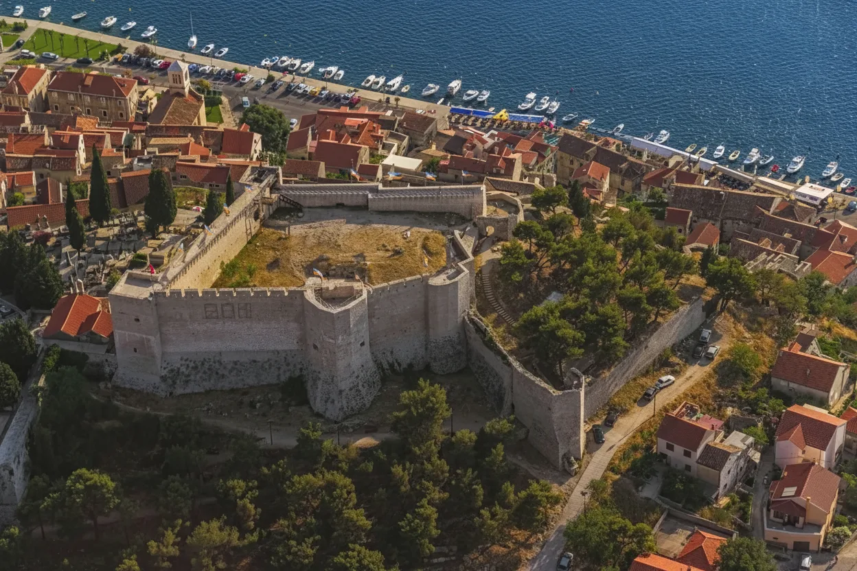 • 🌊 Spot the Krka River estuary as it flows into the Adriatic from the northern ramparts 🛶